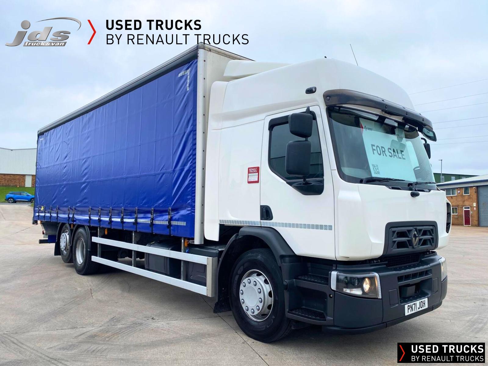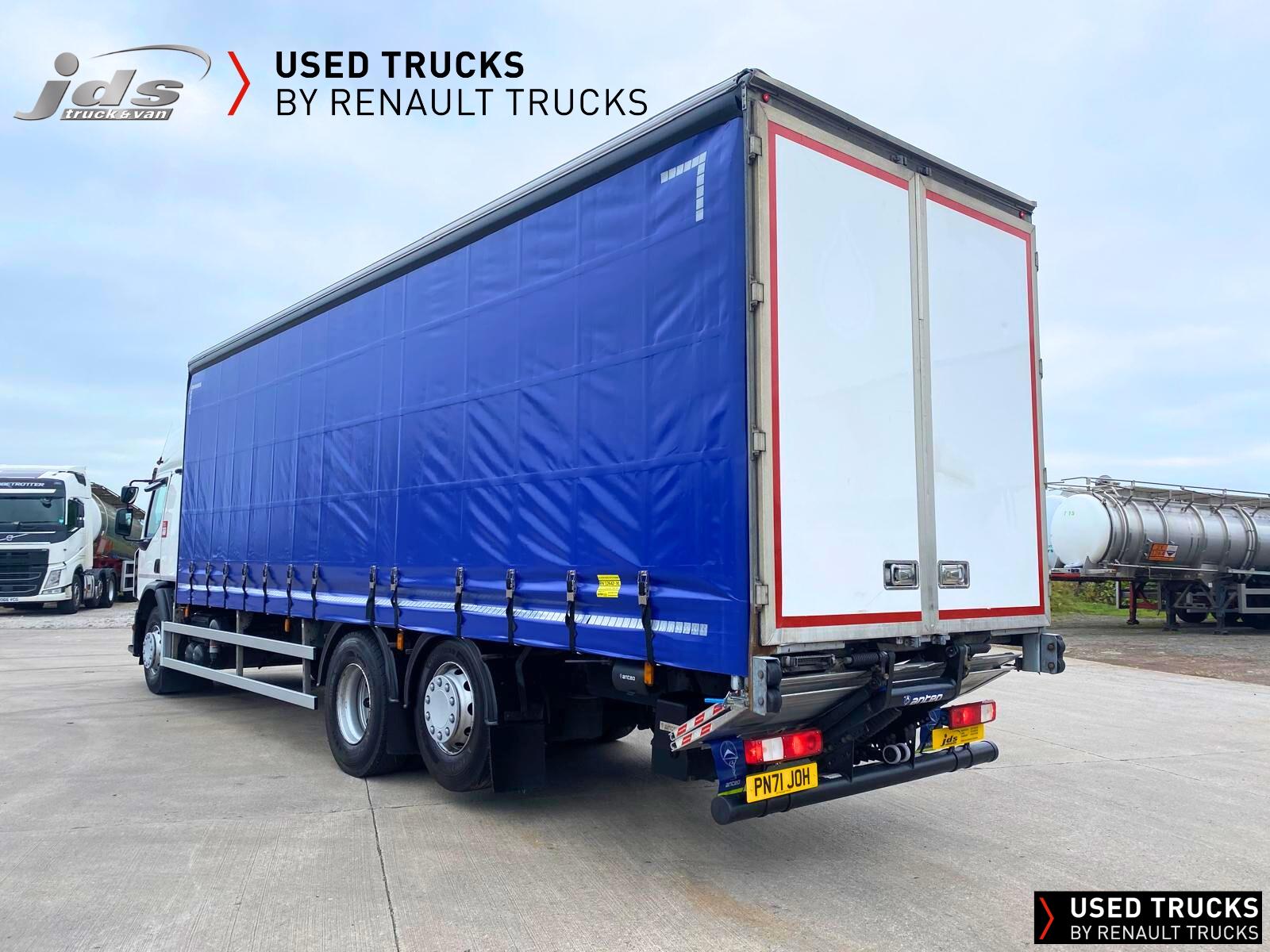 2021 (71) Renault D 26 Wide 6x2 Rear Lift Sleeper Cab Rigid. Fitted with a Curtainsider Body with Rear Barn Doors & 1500 kgs Anteo Tuckaway Taillift. Maintained on a Full Repair Maintenance Contract with FSH & just 299,379 kms! 320 BHP Euro 6 Engine, Auto Gearbox & Rear Air Suspension. High Roof Sleeper Cab with 4-Point Cab Air Suspension, Nightheater, Sunvisor & Air Deflector Kit. 8 Tonne Front Axle, Emergency Brake Assist & Emergency Brake Lights, Lane Departure Warning System, Electric Windows & Mirrors, Tinted & Laminated Windscreen & Windows, Upper Storage Cupboards, CB Pre-Equipment, Electrically Operated Roof Hatch, Air-Suspended Driver's Seat, Adjustable Passenger Seat, Cruise Control with Optiroll, 12/24v Sockets, Remote Central Locking, Running Lights, Reverse Buzzer with Night Switch, FMS Gateway Fleet Management Interface & Telematics Provision. London PSS Camera System Fitted