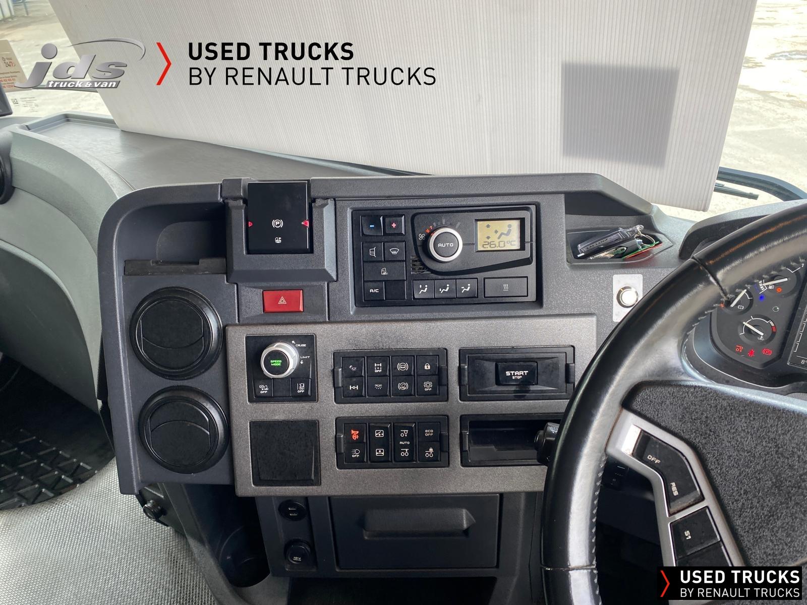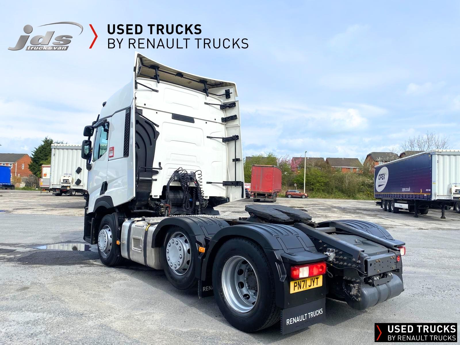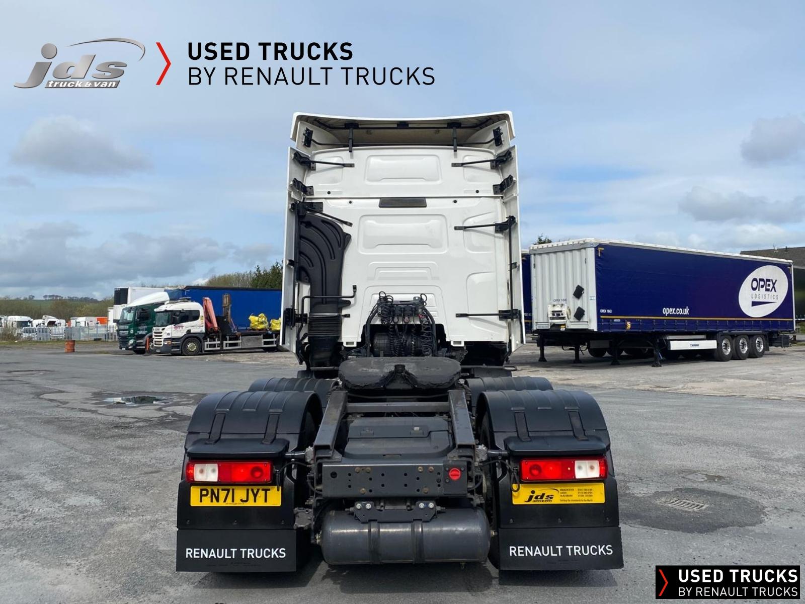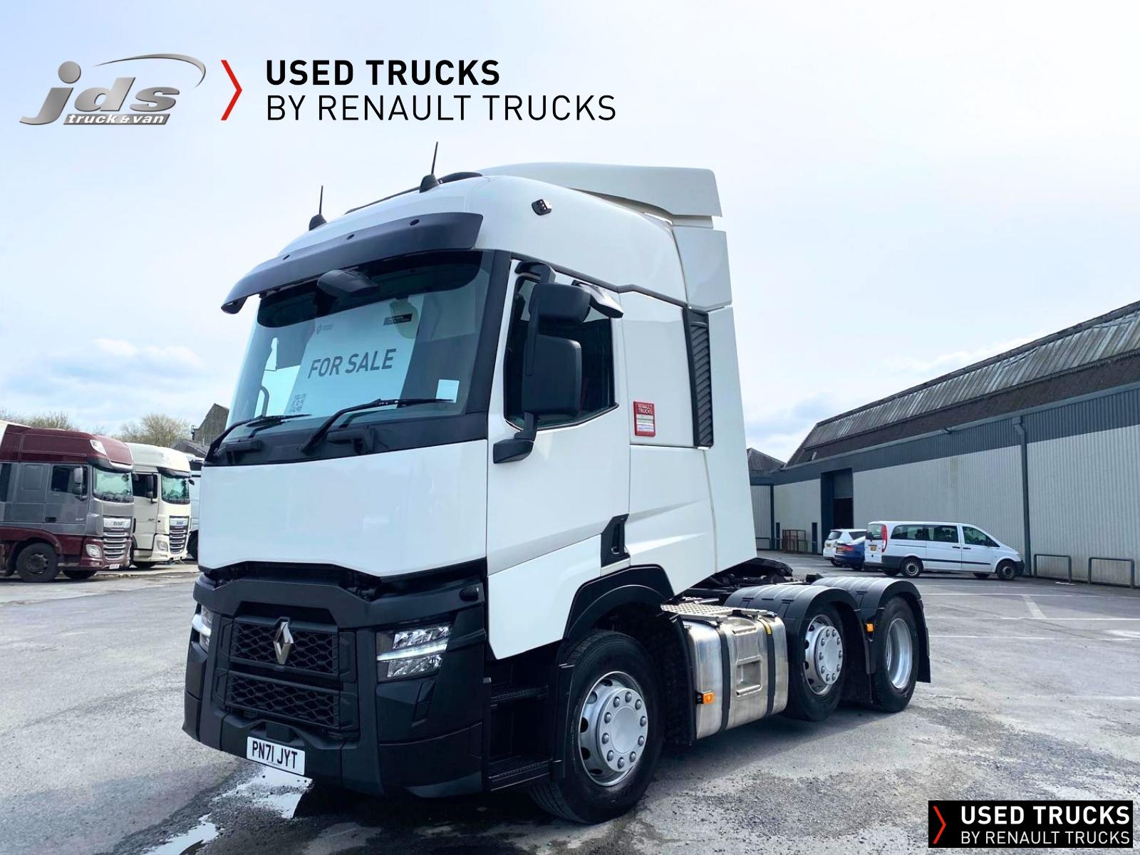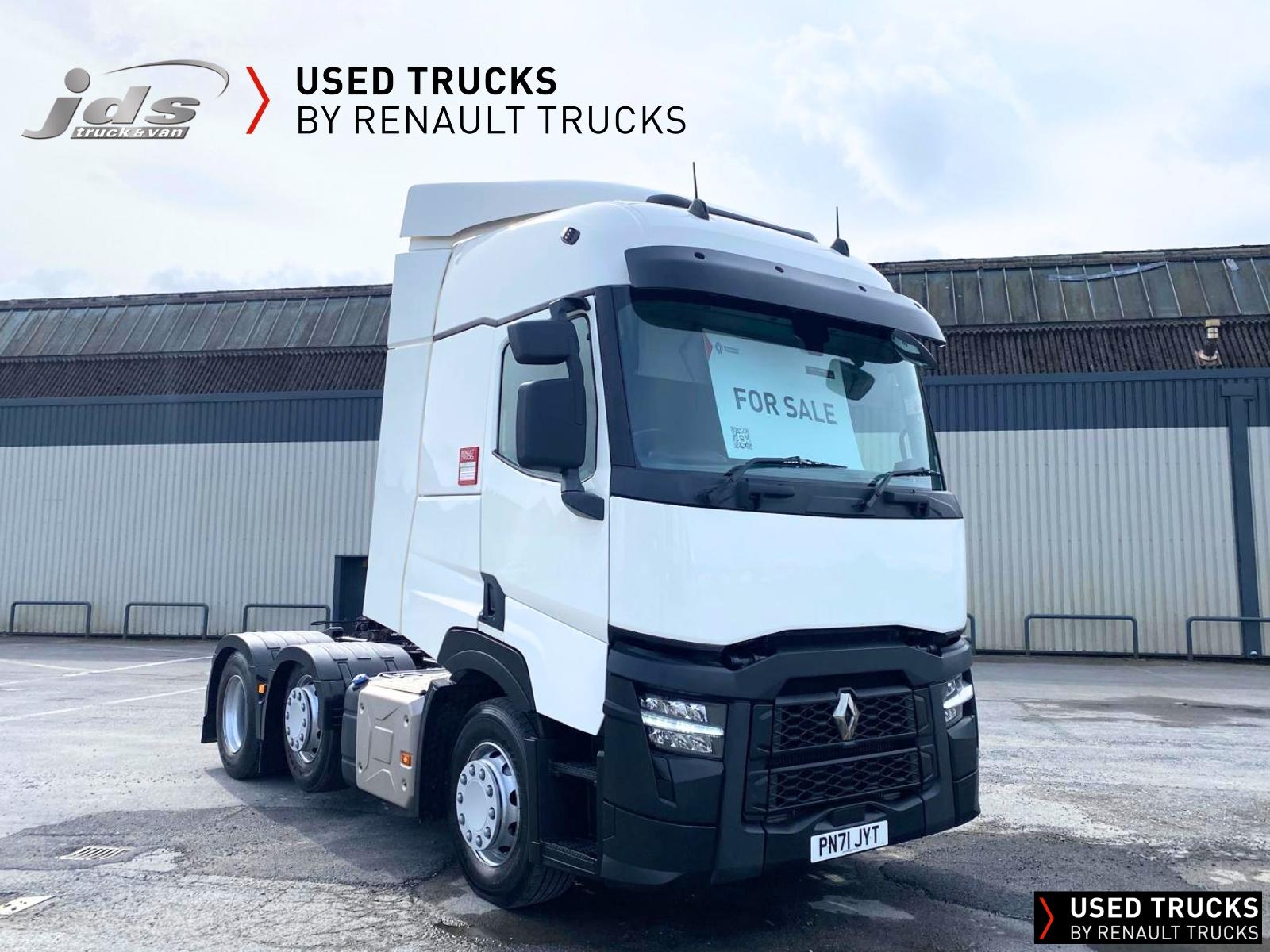 2022 (71) Renault Trucks T480.26 TML EVOLUTION 6x2 Midlift with 13 Litre Engine. Sold New & Maintained by JDS Trucks - with just 350,430 KMS & Full Service History. High Roof Sleeper Cab, 13 Litre 480 BHP Euro 6 Engine & Automatic Gearbox, Engine Brake, 7.5 Tonne Front Axle, ECO Cruise Control with Optiroll, Emergency Brake Assist with Emergency Brake Lights, Hill Start Asist, Electronic Air Conditioning, Full Air Deflector Kit, Heated Remote Control Mirrors, Bluetooth MP3 CD Radio with Fingertip Controls, Electric Roof Hatch, Electric Sunblind, Air-Suspended Driver's Seat with 2 Armrests, Passenger Seat with 2 Armrests, Ultimate Leather Steering Wheel, Drawer under Bunk with 24L Fridge, Microwave, 12/24V Sockets, Sliding 5th Wheel, LED Day Running Lights, Front Fog Lights, Lane Departure Warning System, Reverse Warning Buzzer, FMS Gateway Fleet Management Interface