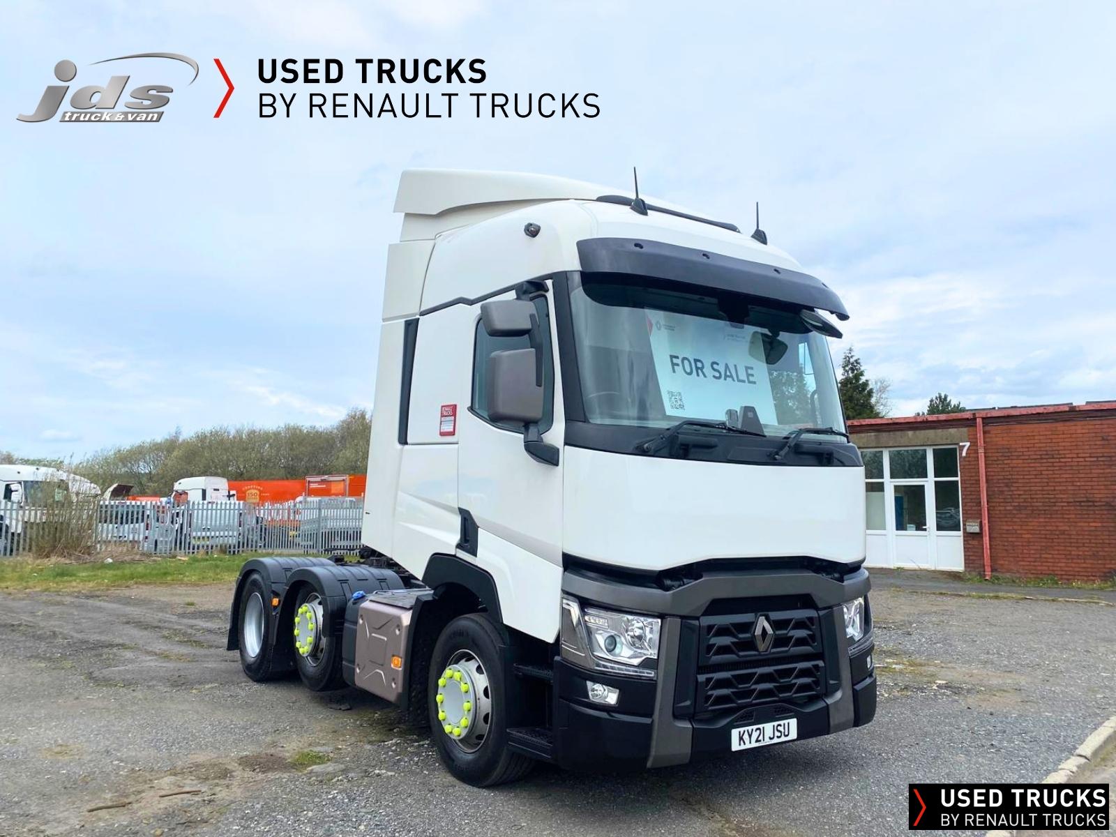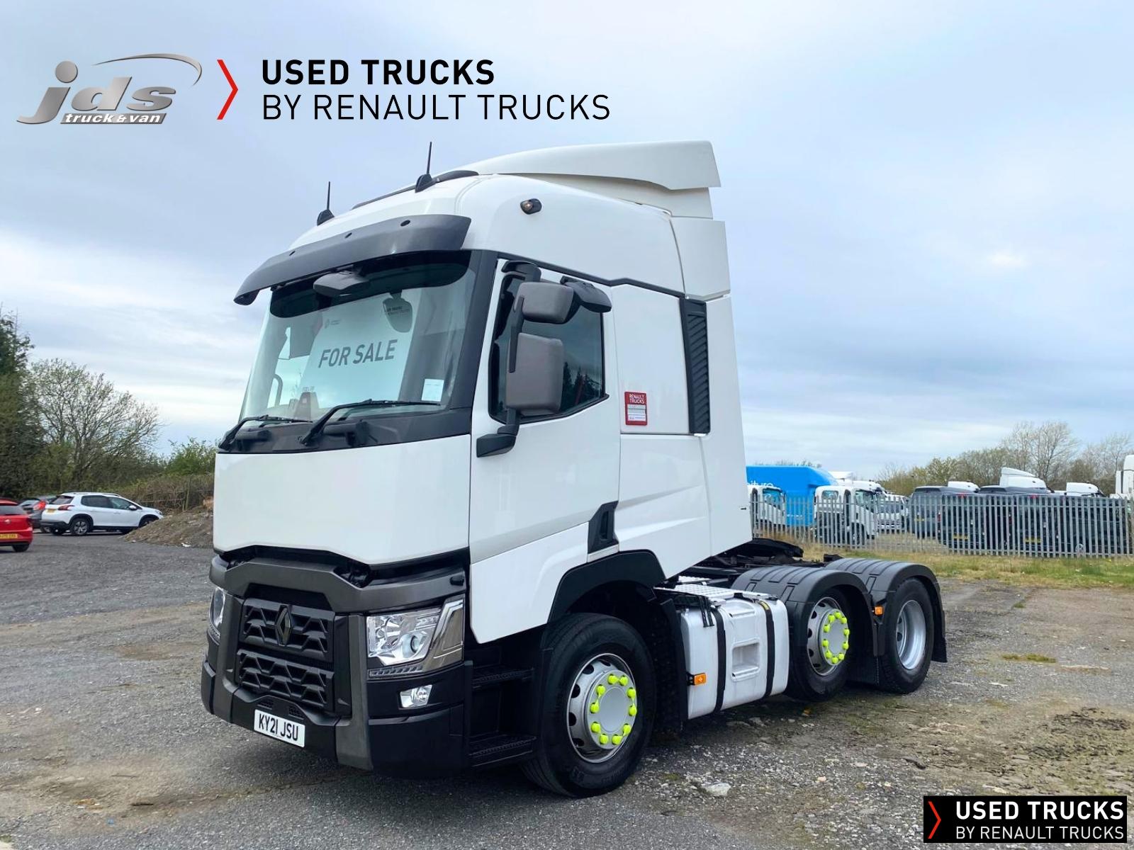 2021 (21) Renault T460.26 TML 6x2 Midlift. One-Owner Contract Maintained Truck with just 423,295 KMS & FSH. High Roof Sleeper Cab, 460 BHP Euro 6 Engine & Automatic Gearbox, Engine Brake, ECO Cruise Control with Optiroll, Emergency Brake Assist with Emergency Brake Lights, Electronic Air Conditioning, 4-Point Cab Air Suspension, Full Air Deflector Kit, Sunvisor, Heated Remote Control Mirrors, Electric Sunblind, Bluetooth MP3 CD Radio with Fingertip Controls, Electric Roof Hatch, Luxury Air-Suspended Heated Driver's Seat with Adjustable Lumbar Support & 2 Armrests, Ultimate Leather Steering Wheel, Drawer under Bunk with 24L Fridge, 12/24V Sockets, Sliding 5th Wheel, LED Rear Lights, LED Day Running Lights & LED Work Light, Front Fog Lights, Lane Departure Warning System, Reverse Warning Buzzer, FMS Gateway Fleet Management Interface & Telematics Pre-Equipment.