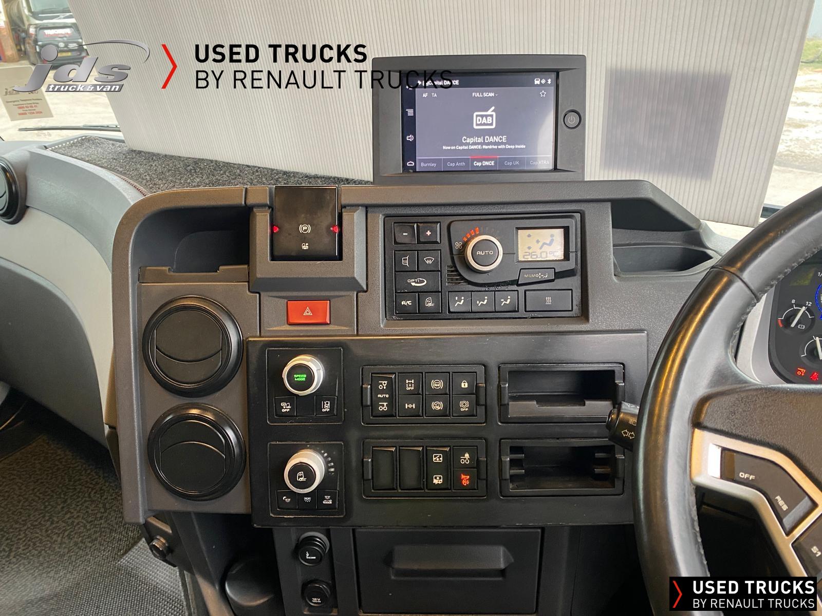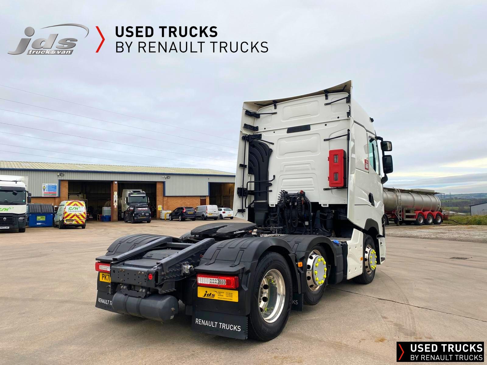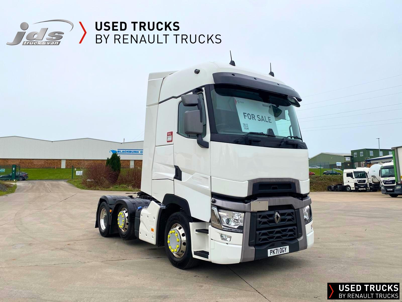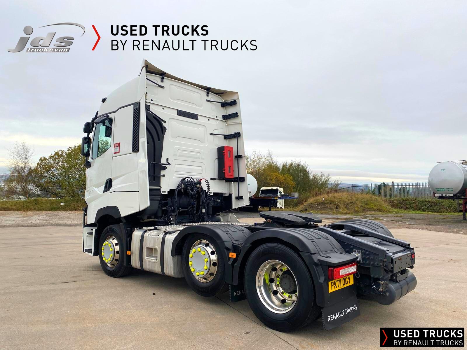2021 (71) Renault T HIGH 520.26 TML 6x2 Midlift Tractor Unit. Maintained on a Renault Full Repair & Maintenance Contract with just 429,368 kms. T HIGH Flat-Floor Sleeper Cab, 13 Litre 520 BHP Euro 6 Engine & Automatic Gearbox, Engine Brake, 4-Point Cab Air Suspension, Alcoa Dura-Bright Alloy Wheels, Electric Cab Tilt, Sunvisor, Adaptive Cruise Control (ACC) with ECO Optiroll, Lane Departure Warning System, Emergency Brake Assist, Electronically Regulated Comfort Air Conditioning, Full Air Deflector Kit, Leather Seats, Electric Windscreen Sunblind, Heated Remote Control Mirrors, Luxury Heated Ventilated Driver's Seat with 2 Armrests, Ultimate Leather Steering Wheel, Drawer under Bunk with 40 Litre Fridge, LED Cab Lighting, Remote Control in Bunk Area for Cab Controls, ROADPAD+ System with HGV Sat Nav, , FM/DAB+ Radio with Bluetooth, USB Port & Jack Socket, 4 Loudspeakers & 2 Tweeters. One-Touch Electric Windows, 12/24V Sockets, Sliding 5th Wheel with Extended Rear Platform, LED Rear Lights, LED Day Running Lights & LED Work Light, Front Fog Lights, Additional Cornering Lights, Automatic Lights & Wipers, Integrated Headlamp Washer, Reverse Warning Buzzer, Metallic Door Sills, Heavy Duty Sediment & Prefilter, Telematics Pre-Equipment, FMS Gateway Fleet Management Interface, Cab Wall Lockers with Microwave.