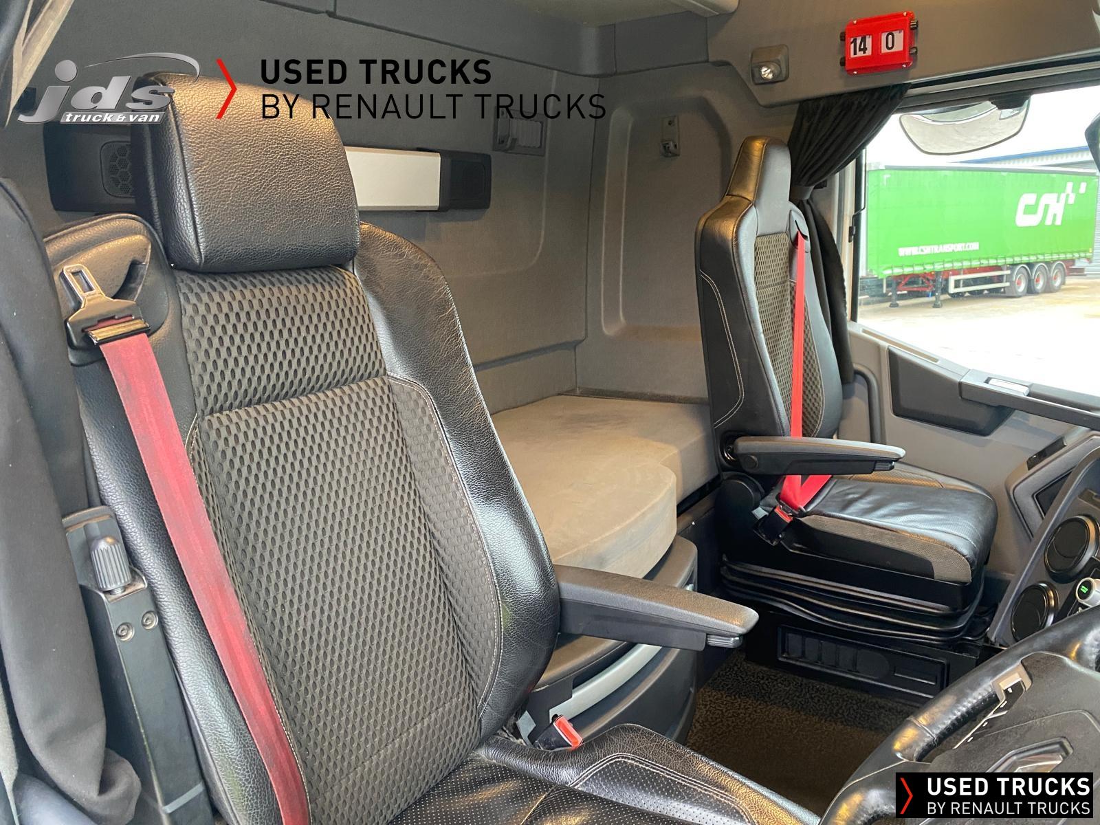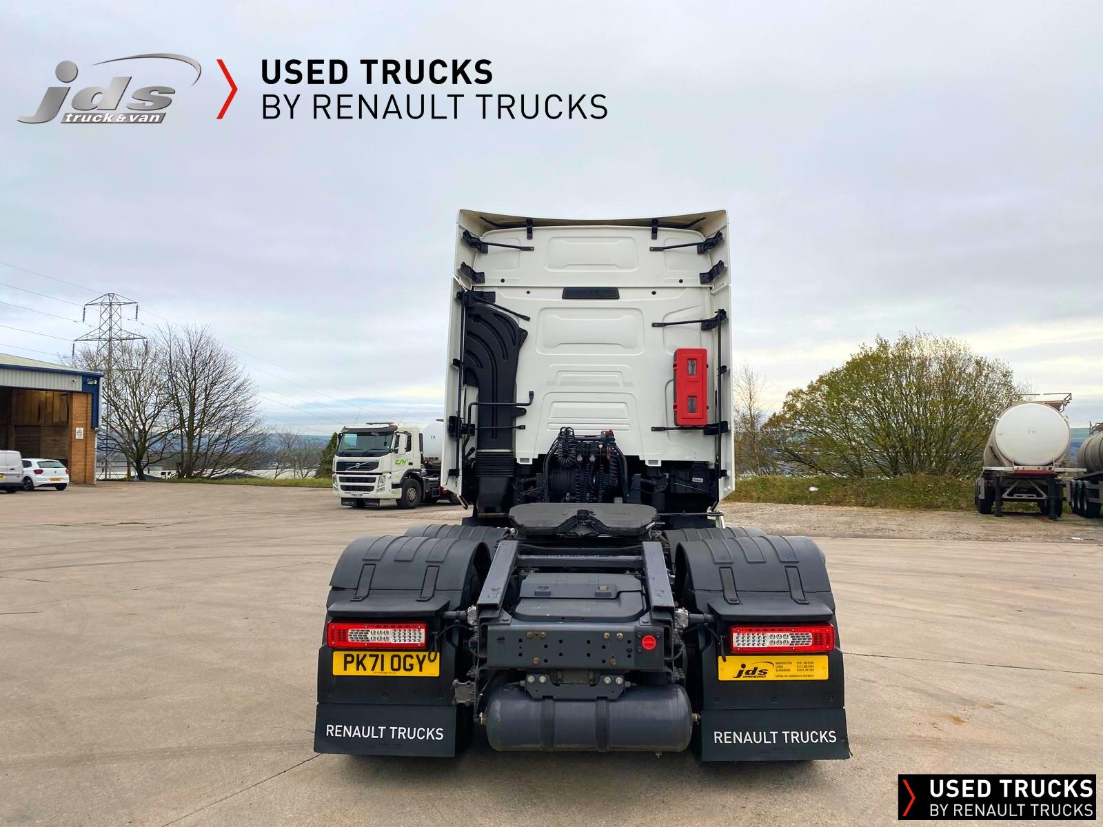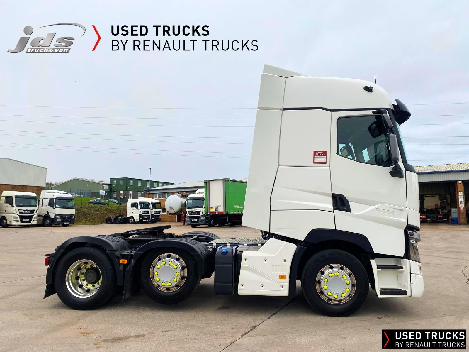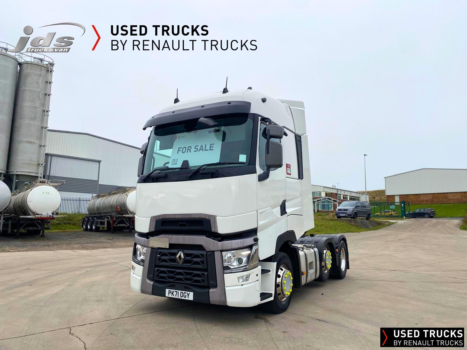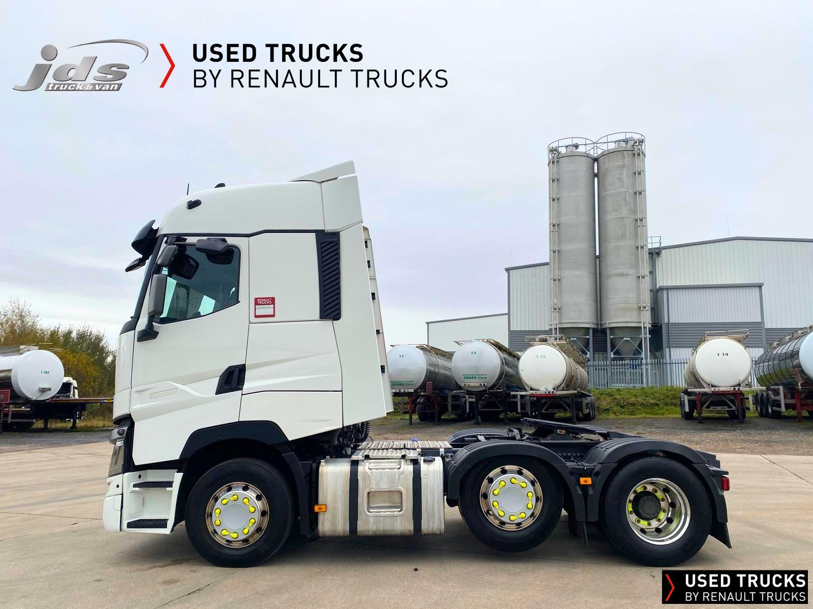 2021 (71) Renault T HIGH 520.26 TML 6x2 Midlift Tractor Unit. Maintained on a Renault Full Repair & Maintenance Contract with just 429,368 kms. T HIGH Flat-Floor Sleeper Cab, 13 Litre 520 BHP Euro 6 Engine & Automatic Gearbox, Engine Brake, 4-Point Cab Air Suspension, Alcoa Dura-Bright Alloy Wheels, Electric Cab Tilt, Sunvisor, Adaptive Cruise Control (ACC) with ECO Optiroll, Lane Departure Warning System, Emergency Brake Assist, Electronically Regulated Comfort Air Conditioning, Full Air Deflector Kit, Leather Seats, Electric Windscreen Sunblind, Heated Remote Control Mirrors, Luxury Heated Ventilated Driver's Seat with 2 Armrests, Ultimate Leather Steering Wheel, Drawer under Bunk with 40 Litre Fridge, LED Cab Lighting, Remote Control in Bunk Area for Cab Controls, ROADPAD+ System with HGV Sat Nav, , FM/DAB+ Radio with Bluetooth, USB Port & Jack Socket, 4 Loudspeakers & 2 Tweeters. One-Touch Electric Windows, 12/24V Sockets, Sliding 5th Wheel with Extended Rear Platform, LED Rear Lights, LED Day Running Lights & LED Work Light, Front Fog Lights, Additional Cornering Lights, Automatic Lights & Wipers, Integrated Headlamp Washer, Reverse Warning Buzzer, Metallic Door Sills, Heavy Duty Sediment & Prefilter, Telematics Pre-Equipment, FMS Gateway Fleet Management Interface, Cab Wall Lockers with Microwave.